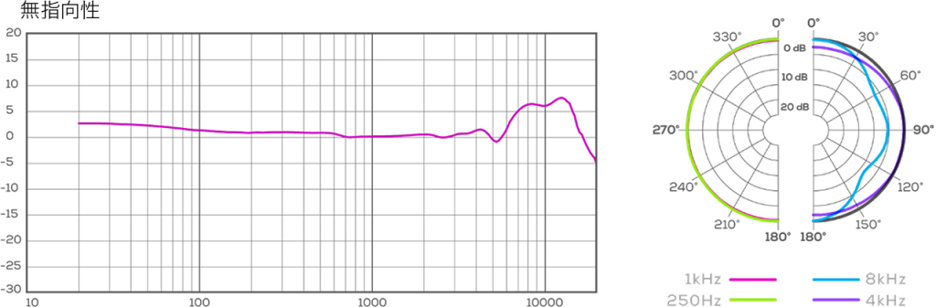 | 指向特性 | カーディオイド/無指向性/双指向性 |